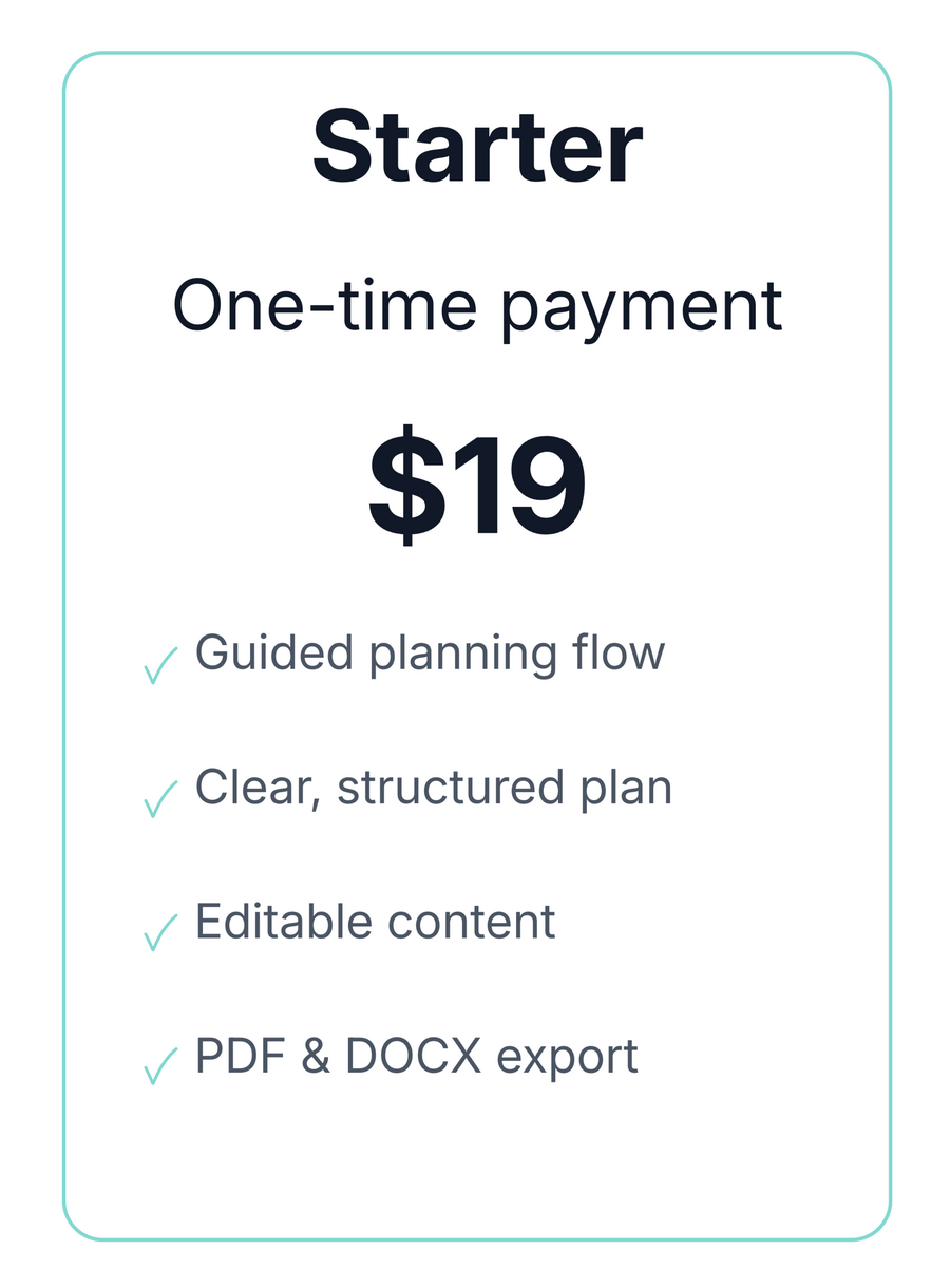 Download your plan as a PDF or DOCX whenever you need it